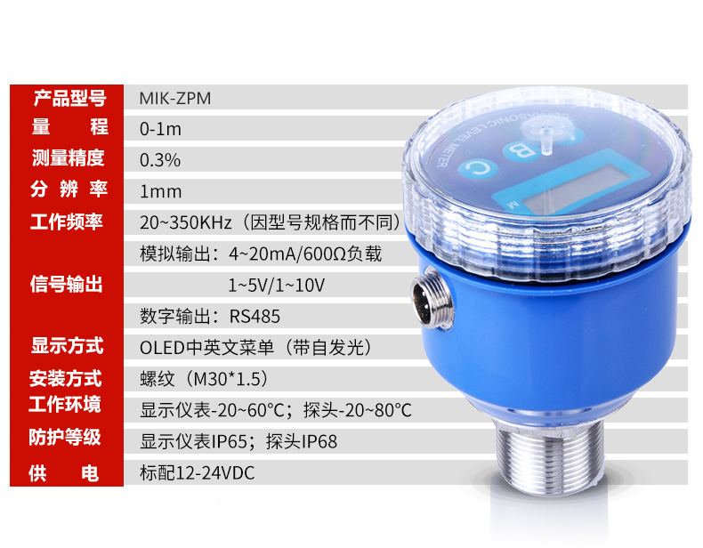 MIK-ZPM小量程超聲波液位計利用發射超聲波經物位或液位,反射后所需要的時間來計算距離。因其不接觸介質,安裝維修方便等性能在如今的工業現場應用越來越多。可廣泛應用于各種液體和固體物料高度的測量,特別是在某些衛生型要求高的現場有著不可取代的優勢。