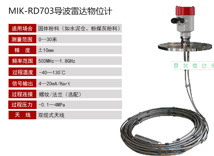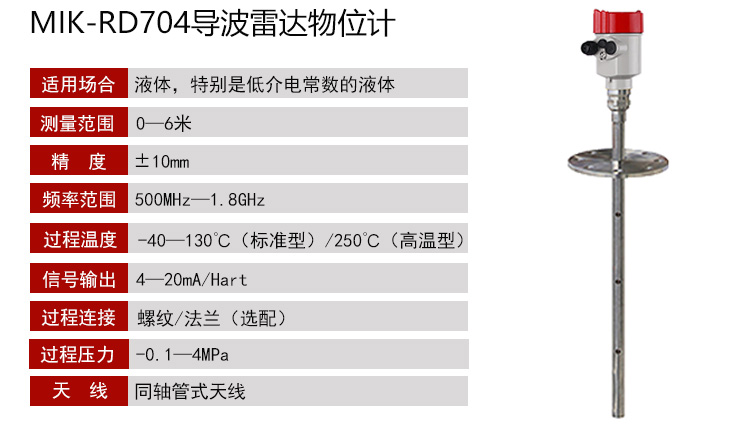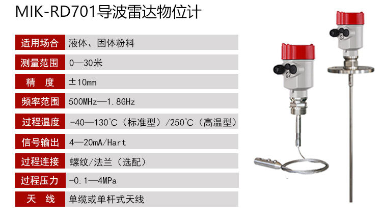 MIK-RD701雷達物位計天線發(fā)射極窄的微波脈沖,這個脈沖以光速在空間傳播,遇到被測介質(zhì)表面,其部分能量被反射回來,被同一天線接收。發(fā)射脈神與接收脈沖的時間間隔與天線到被測介質(zhì)表面的距離成正比。由于電磁波的傳播速度極高,發(fā)射脈神與接收脈神的時間間隔很小(納秒量級)很難確認,MIK—RD70導(dǎo)波雷達物位計采用種特殊的解調(diào)技術(shù),可以準確識別發(fā)射脈神與接收脈神的時間間隔,從而進一步計算出天線到被測質(zhì)表面的距離。