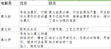 根據電解質不同,可以分為:銨鹽鍍鋅、鉀鹽鍍鋅和鈉鹽鍍鋅,具體見下表: