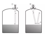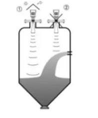 經常遇到剛接觸雷達的朋友,在安裝的過程中,把雷達的安裝位置距離進料口太近,導致使用過程中測量的液位不準確。由于離進料口近,進料會極大干擾雷達介質傳播與反射,所以我們在安裝的時候,要盡量遠離進料口(以下安裝1為正確,2為錯誤)