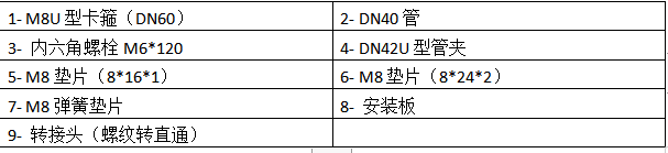 將2(DN40管),通過4(DN42U型管夾)固定于8(安裝板)上,如圖3