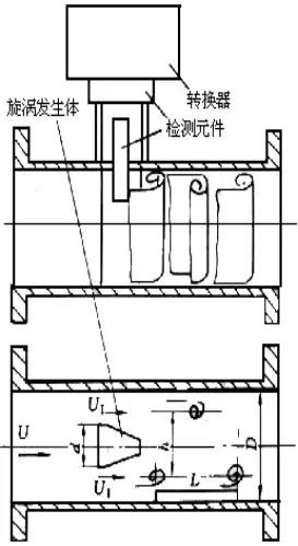 當一穩定的流體流經有一定長度的直管道時,撞擊沉浸在流體中的非線性柱體,在流體的下游會產生漩渦(即卡門漩渦)。當流體的雷諾數(Re)在一定的范圍內,漩渦的發生規律是穩定可靠的,漩渦發生的頻率F由公式:F=(St?*?V)/d?確定