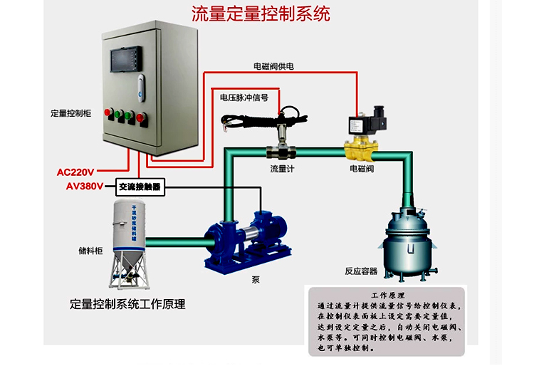 美控定量控制系統由流量積算儀、渦輪流量計、電磁閥等組成,可以通過設備聯動,自由設定液體出水量,更精準的實現物料配比,全面提升生產效果。其工作原理是通過流量計提供流量信號給控制儀表,在控制儀表面板上設定需要定量值,達到設定定量之后,自動關閉電磁閥、水泵等。可同時控制電磁閥,水泵,也可單獨控制。可以廣泛應用在食品、制藥、發酵、環保、精細化工等行業。