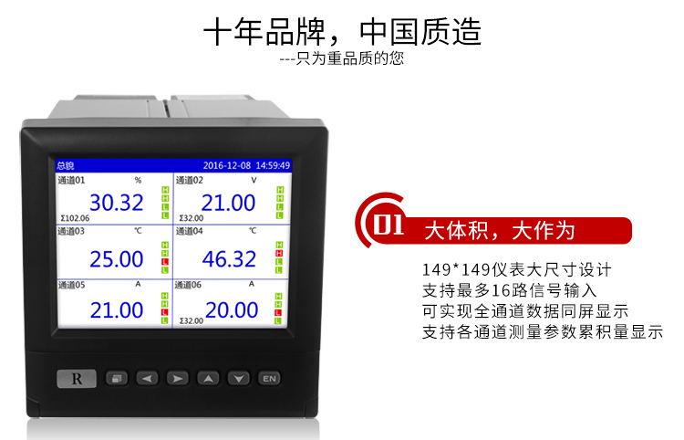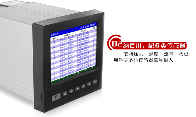RX4000D系列藍屏無紙記錄儀可以采集、顯示與記錄現場變送器的信號。可以通過USB接口轉存,通過計算機中事先安裝好的數據分析軟件,監測和評價歷史數據和曲線。采用進口的高速、高性能ARM微處理器,5.6英寸LED背光的液晶顯示屏和觸摸式的按鍵,主要應用于冶金、石油,化工、建材,造紙,食品、醫藥、熱處理等各種工業現場,在杭州娃哈哈,大慶油田,秦山核電站等都得到了應用。