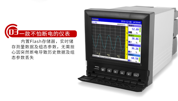 掉電保護:所有數據保存在FLASH存儲器中,無需后備電池,確保所有歷史數據及組態參數不會因掉電而丟失