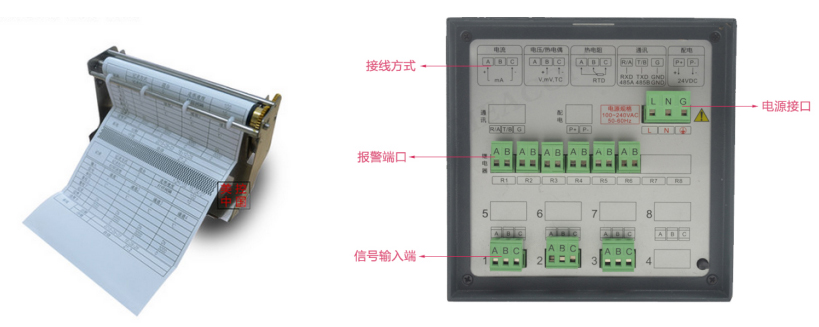 R1200最多具有8路輸入通道,通道之間采用點點隔離的方式。每路通道均可以接收多種信號,如:熱電偶信號、熱電阻信號、電壓信號、電流信號等。記錄儀可以對被測信號進行數字顯示、趨勢記錄以及數字記錄,能在110mm寬的紙格上同時記錄刻度值、時間以及每個信號的曲線并且將通道號印在各通道的軌跡旁,并通過液晶屏實時顯示、查看。R1200有紙記錄儀打印記錄功能采用進口固定式熱敏頭、無筆墨消耗、無筆位誤差、抗震動。目前R1200有紙記錄儀被廣泛應用于冶金、醫藥、石油、化工、電力等行業。